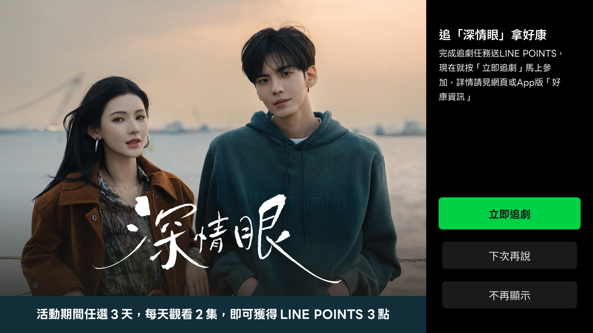 【電視版App限定追劇贈點】姐姐愛上小奶狗♡~追「深情眼」拿好康,完成任務得LINE POINTS 3點~